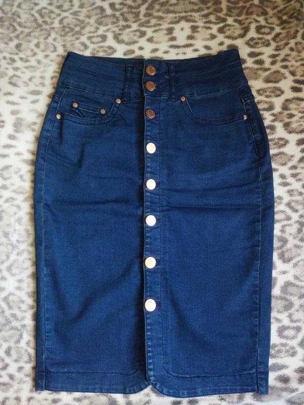 Брендовая джинсовая юбка карандаш на пуговицах .. Ткань тянется .Джинс мягкий! Очень красиво по фигуре! Длинна 61см п/о по бёдрах 44 см, п/о пояс 34см.