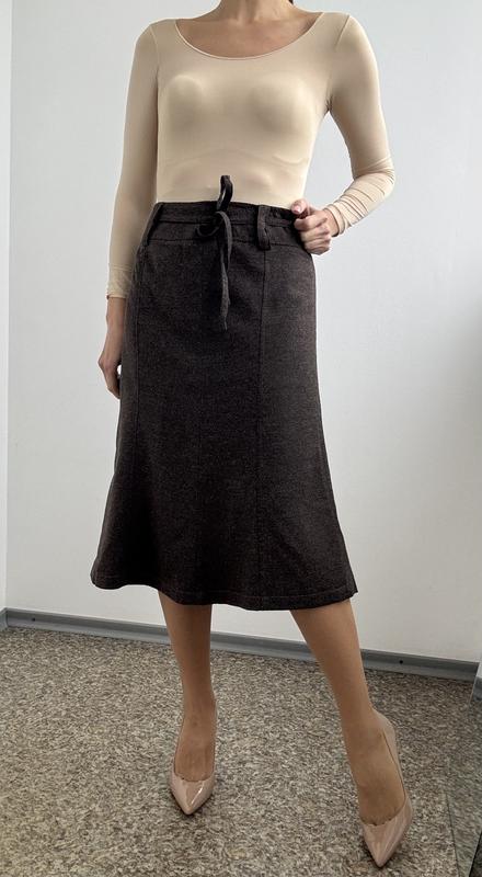Спідниця восьмиклинка міді Marc Aurel, 75% вовна, 15% віскоза, 10% поліамід. Колір коричневий. довжина 70, пот 40, стегна 48.5, ширина по низу 68