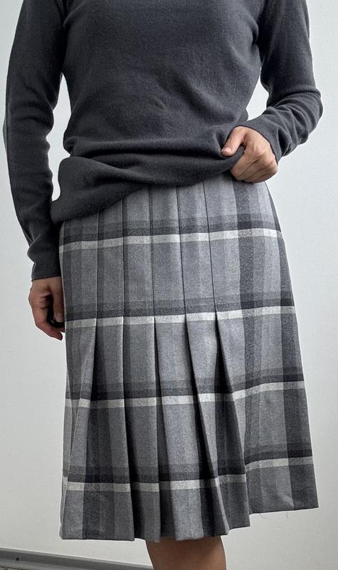 Спідниця у складку зі 100% вовни, принт клітинка. Довжина 67, пот 41, стегна 54 Попереду 6 складок, позаду одна