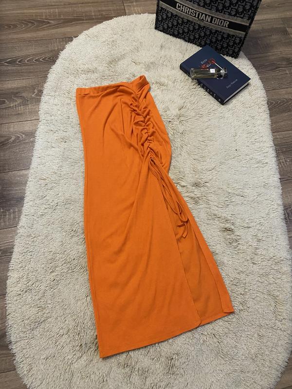 ❗️Кожна третя (найдешевша) річ у подарунок (1+1=3), за умов «оплати на картку»❗️Всі деталі в профілі «про мене»❗️ Спідниця олівець з текстурованим дизайном у насиченому помаранчевому кольорі розміром one size, найкраще підійде S,M, довжина 87см., півобхват таліі 29см., бірка зі складом відсутня, на дотик як бавовна, гарно тягнеться та сідає по фігурі (фото на розмірі L).