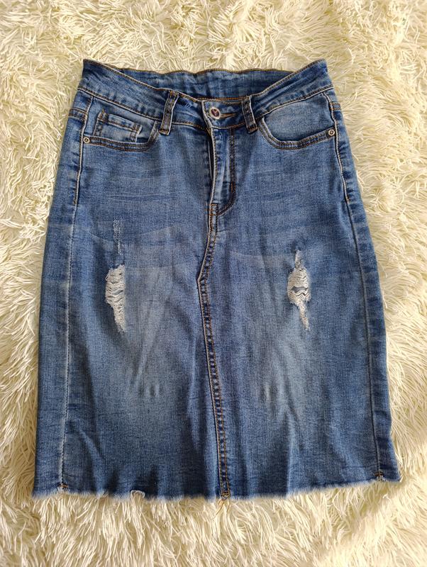Джинсова спідниця синього кольору Вигідна пропозиція за привабливою ціною.З якісного матеріалу, одягалася 2 рази, дефектів немає,25 розміру.