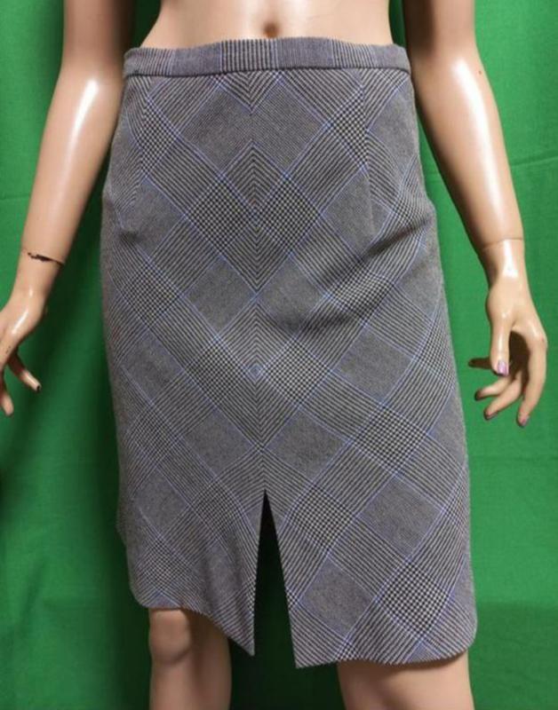 Юбка трапеция в ромбовидную клетку из шерсти и района, с разрезом спереди cerutti. винтаж