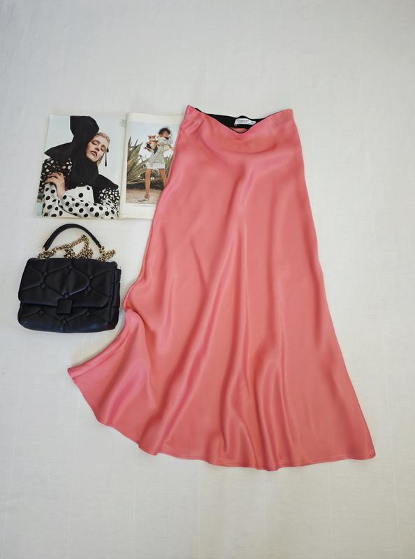 🌿яскрава спідниця міді з ефектом атласу, талія на резинці Розмір:М Заміри:ПОТ 33 см, довжина 86 см