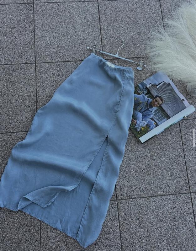 Довга спідниця максі з розрізом h&m міді спідничка блакитно сіра