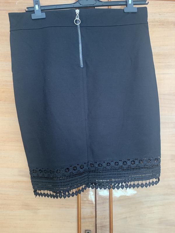Спідниця олівець чорного кольору. Ззаду працюючий замок. Талія на широкій резинці (на фото 3). Без катишок. Тканина гарно тягнеться тому ідеально лягає по фігурі. Знизу кружево По замірах Довжина 54 см Пот 42-48 Поб 48-58