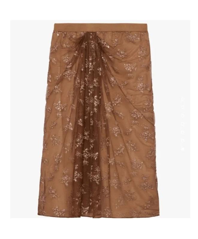 ФИРМОВАЯ СПИДНИКА ОТ ZARA. Юбка Zara с кружевом, имеющая абстрактный узор выполненный, методом напыления на ткань. Нюдовый подклад прекрасно гармонирует с кружевной верхней юбкой бежево-коричневого цвета. Центральная часть юбки собрана, создавая драпированный эффект, подчеркивающий текстуру и узор ткани. Юбка может быть частью вечернего, праздничного образа благодаря своему блестящему декору и элегантному крою, но будет прекрасно смотреть и под свитер крупной вязки. Материал: Подклад - 100% вискоза Верхняя юбка - 97% нейлон,3% металлизированное волокно. Размер S ЗАМІРИ: Полуобхват талии -37см-45см Полуобхват бедер по нижней юбке (верхняя часть более свободного кроя) - 52см Длина - 70см Размер M. ■■■ПРОДАНО■■■ ЗАМІРИ: Полуобхват талии - 40см - 50см Полуобхват бедер по нижней юбке (верхняя часть более свободного кроя) - 54см Длина - 70см Размер L ■■■ ПРОДАНО■■■ ЗАМІРИ: Полуобхват талии - 43см- 53см Полуобхват бедер по нижней юбке (верхняя часть более свободного кроя) -57см Длина - 71см Размер XL. ■■■ПРОДАНО■■■ ЗАМІРИ: Полуобхват талии - 46см - 55см Полуобхват бедер по нижней юбке (верхняя часть более свободного кроя) - 60см Длина - 72см