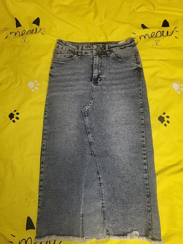 юбка джинсовая. в хорошем состоянии. длина - ниже колена. с разрезом спереди.