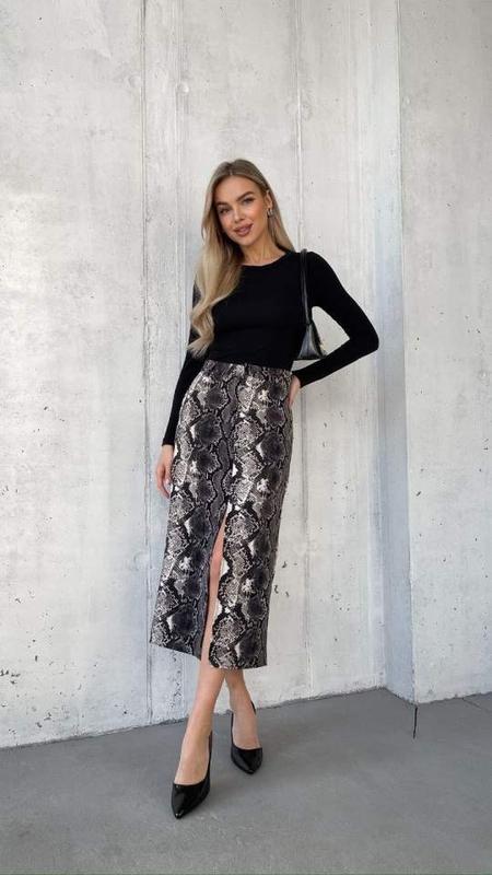 Жіноча спідниця пітон зміїний принт міді з розрізом exclusive collection