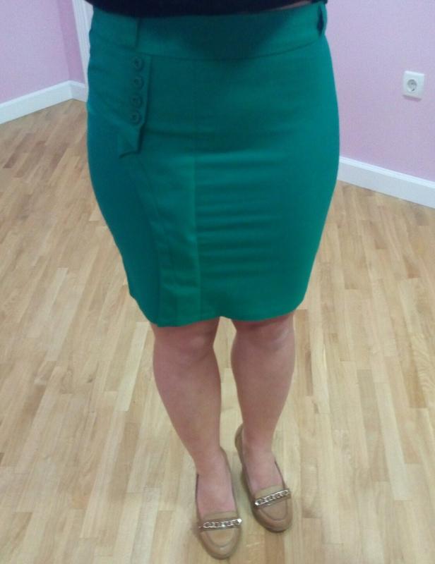 Спідниця зелена насиченого кольору, облягає по фігурі, довжина 45, талія 37