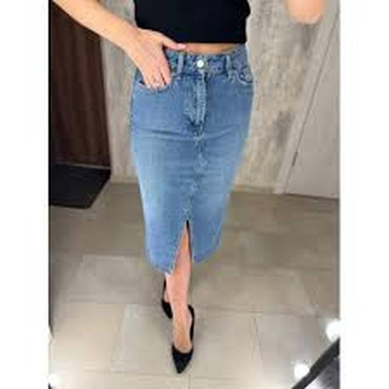 Джинсовая прямая юбочка с разрезом LTS. Размер 18/46. Длина 82 см. ПОТ 48 см. ПОБ 57 см.