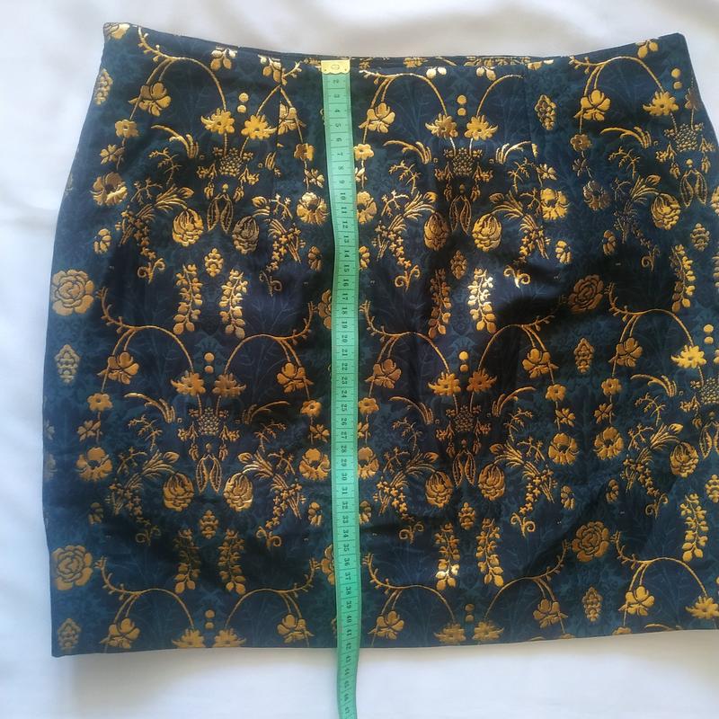 юбочка мини из тканой парчевой ткани.розм.40.талия-80см,бедра-100см., длина 40см.на подкладке,стан идеальный.основа темно-зеленого цвета и рисунок золотом.