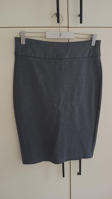 темно-серая юбка до колена офисного стиля с замочком сзади