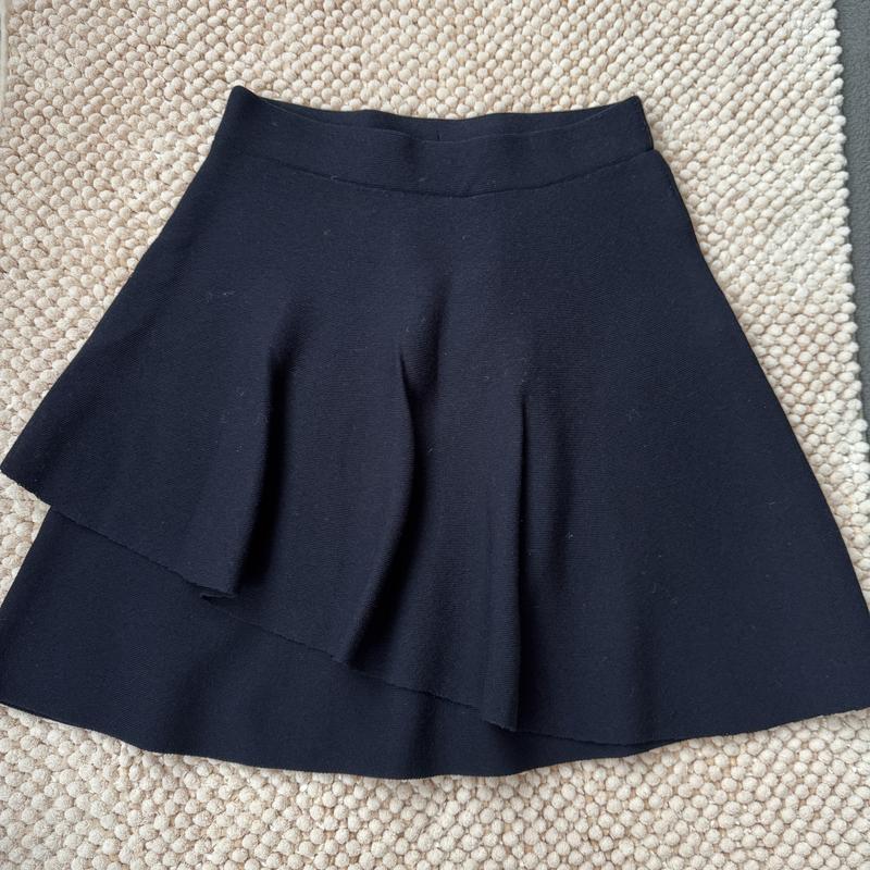Трикотажна спідниця з воланом ZARA. Пояс на резинці . Плотний трикотаж, теплий. Розмір S. Стан дуже гарний . Колір темно-синій.
