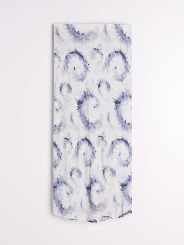Меди юбка из вискозы с абстрактным узором, кремовая с серо-голубым принтом. Эластичный пояс для оптимальной посадки, свободный крой. Ткань легкая, но не просвечивает, летняя коллекция, можно как пляжную использовать. Размер М, соответствует размеру. Совершенно новая с этикеткой.