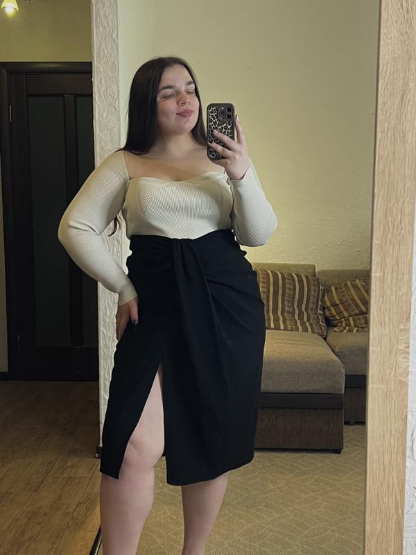 Спідниця-міді від Zara Розмір по бірці - хл Півобхват талії - 45 см Півобхват стегон - 63 см Довжина - 77 см Красиво підкреслює талію Мої параметри: 105-88-120/160