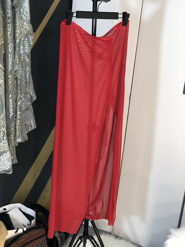Червона прозора спідниця міді сітка юбка прозора червона довга