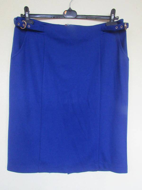 Трикотажная синяя прямая миди юбка с разрезом от per una