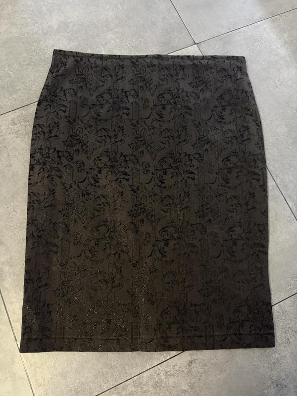 Спідниця олівець чорна з вибитими квітами з люрексом