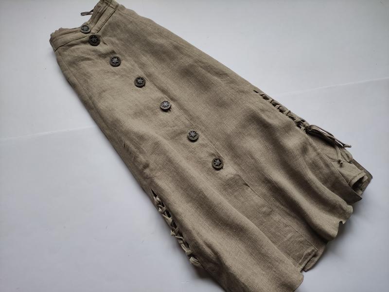 Льняная юбка Размер L-XL ПОТ - 37-39, ПОБ -свободно, в разложенном виде 69. Длина 88. Ткань плотная, мягкая Отличное качество Юбка качественно и изысканно смотрится, красиво садится по фигуре Комфортная и стильная льняная юбка - воплощение естественной элегантности. ✨ Особенности, в которые невозможно не влюбиться: Натуральная, дышащая льняная ткань Уникальный дизайн: декоративные пуговицы с изящным рисунком. Изюминка: Стильная шнуровка по бокам, которая добавляет образу бохо-шику. Создайте свой неповторимый образ: от романтичного с легким топом или кофтой до этно-стиля с вышиванкой.