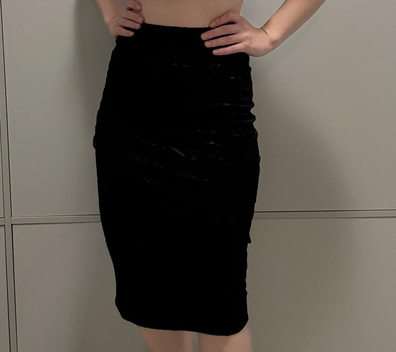 Чорна спідниця міді Тканина приємна, узор сірими рослинами по чорному Розмір S