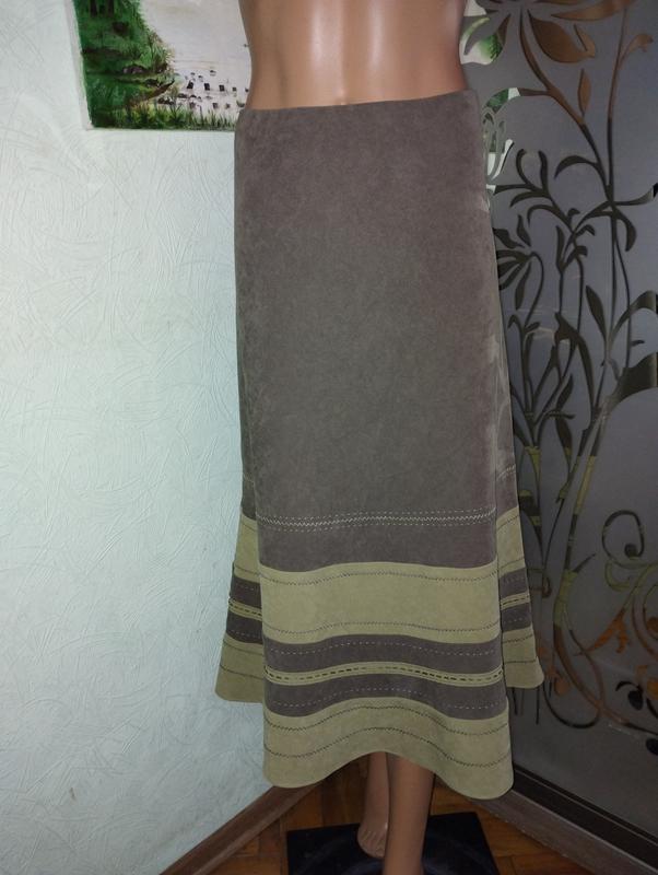 Штучна замша,м'яка,приємна на дотик,не мнеться, тримає форму.розмір по бірці 12.Пот 38-41, резинка,поб 50-52,довж 83.