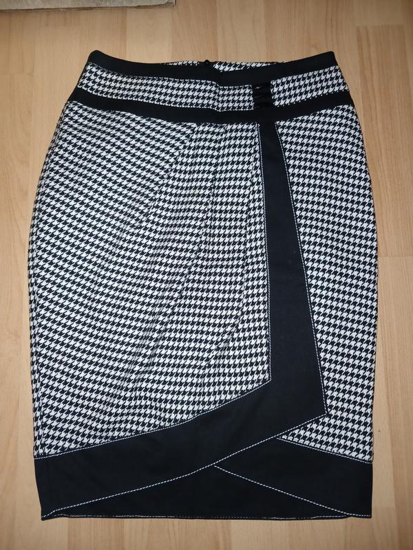 Отличная юбка, прямая, но в то же время подчеркивает талию. По типу на запах. Приятный материал, и красивый узор