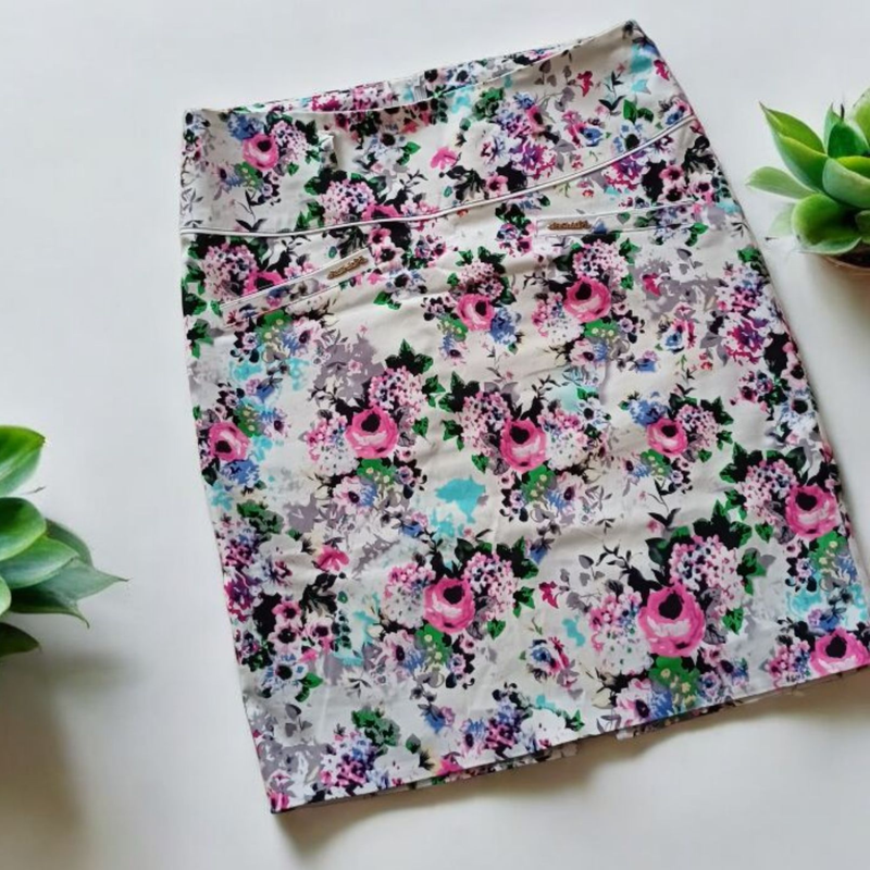 Юбка-карандаш в цветочный принт (Стрейч-котон) Главные преимущества и особенности: Ткань - стрейч-коттон: Натуральный коттон обеспечивает комфорт и воздухопроницаемость, а эластан (стрейч) гарантирует идеальную посадку, не сковывая движений. Юбка отлично тянется, адаптируясь к фигуре. Фасон: Прямой, слегка приталенный крой ("карандаш"), что эффектно подчеркивает бедра. Есть петли для ремня. Длина - 60см. Полуобхват бедер - 53см. Длина реза (позади) - 17см. Стан идеален, без дефектов. Доставка Нова пошта