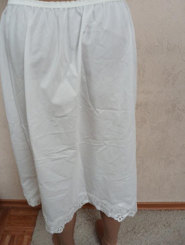 Подъюбник женский базовый белый, нижняя юбка коттоновая, украшенная хлопковым кружевом. Пот от 32 см, до 36 см, постэгон 56 см, длина изделия: 66 см.
