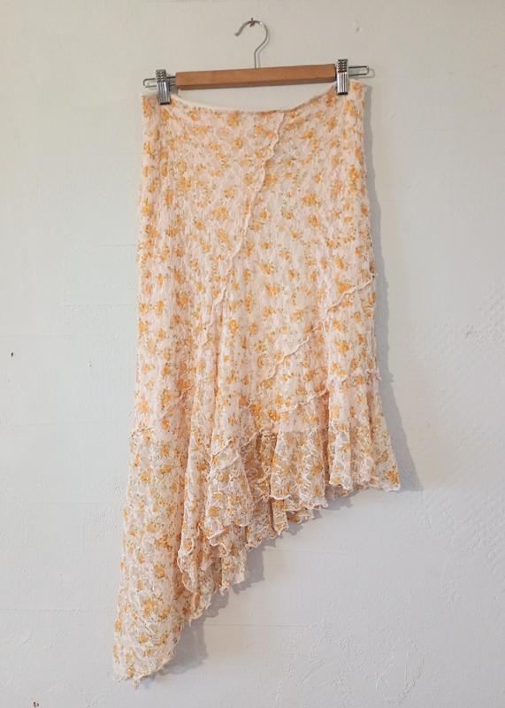 асимметричная ажурная юбка с воланами в размере s. есть подклад.