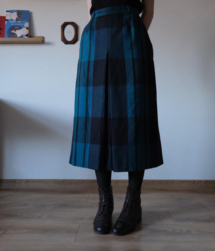 Юбка в клетку с карманами ✨️В отличном состоянии, но есть повреждения на подкладке ✨️Размер 40, на фото на XS, рост 170 см (не по размеру, затянуто для фото) ✨️Невероятная шерстяная юбка в клетку (синий и оттенки зеленого цвета, + черный цвет). Юбка изготовлена из шерсти, подкладка ацетат. Недостатки на подкладке: сзади, где молния, разошлась по швам и повредилась; сверху у молнии есть затяжки, возможно и была бирка; на бегунке следы времени 📎Полуобхват пояса - 36-37 см Полуобхват бедер - до 50 см Длина - 78 см