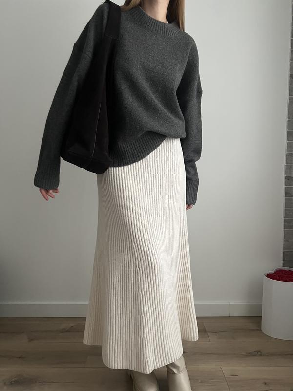 2. Вʼязана міді спідниця H & M Тепла вʼязка, талія на резинці, тканина в рубчик, приємна до тіла, загалом базова модель, і нічого зайвого! Розмір Л, більшемірить на ХЛ Заміри: поб талії 45см, стегон 50-66см, довжина 91см Склад: 60% бавовна, 40% акрил Стан чудовий Ціна 700 грн Мої параметри: 81-62-90, ріст 163 см