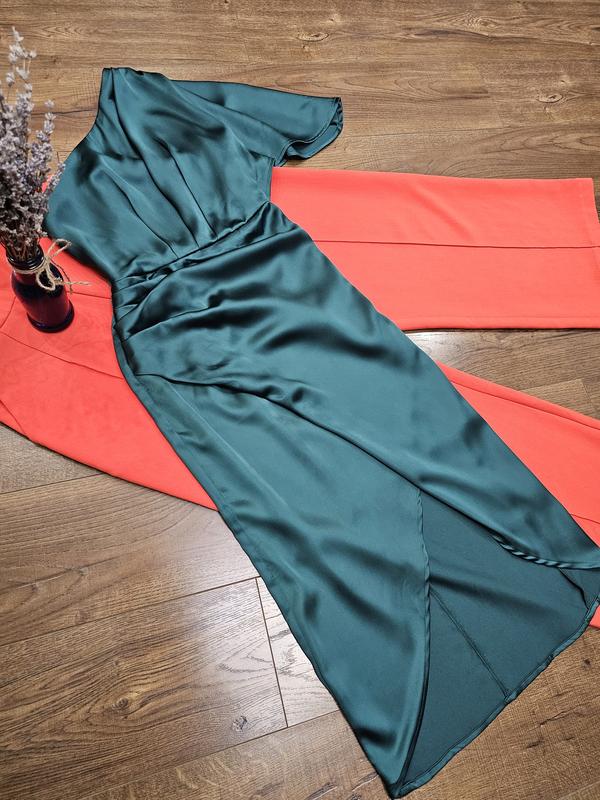 🌹Невероятно красивое сатиновое платье на одно плечо. Очень красивый изумрудный цвет. Длина миди. Бирка с брендом и составом отсутствует. 🌿 Подойдет на размер XXS или XS. По запросу сделает все необходимые замеры.
