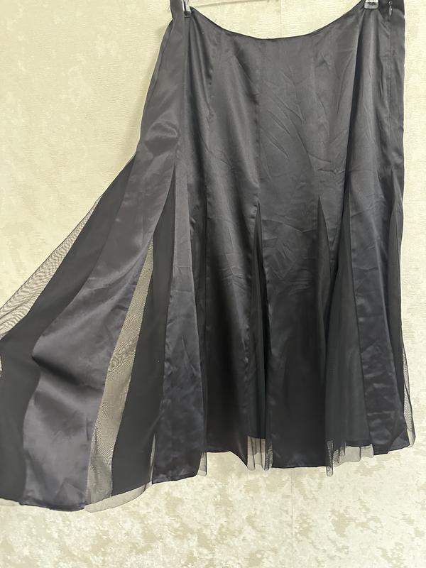 Чудова якісна шовкова спідниця крою годе з прозорими вставками на підкладці. Дуже приємна на дотик, має ніжний шовковий блиск. Якісна, стильна, актуальна модель, яка чудово сідає по фігурі. Підійде як для святкових образів, так і для щоденних стильних луків. Виміри: ПП 45 ПС 59 Низ 126 Довжина 80