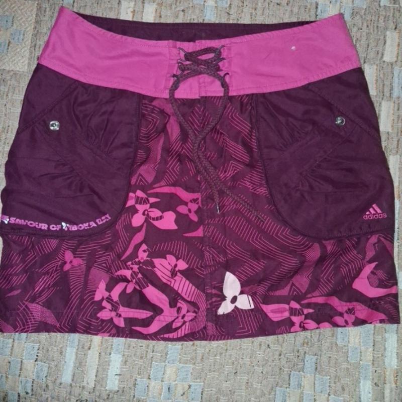 Юбка Adidas с накладными карманами и декором шнуровкой спереди, тканная мягкая натуральная, замеры ена фото функциона почти символично как и многое другое в своих обьевах
