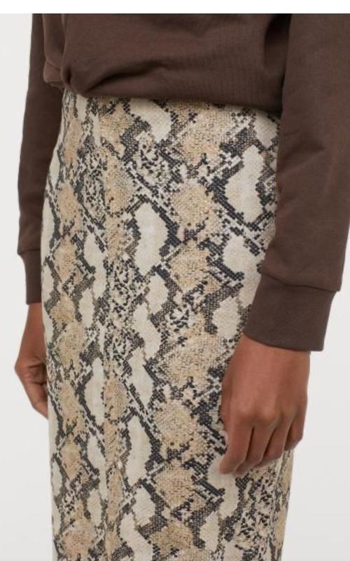 Стильна спідниця-олівець міді зі зміїним принтом від H&M. має розріз спереду Заміри на фото