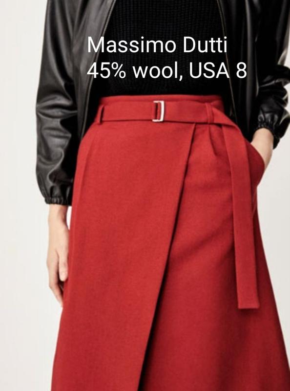 Теплая шерстяная юбка миди Massimo Dutti на подкладке. Трапеция, на запах. Больше фотодам по запросу. 🌿Составляющие: 45% wool, 55% cotton, подкладка - 100% viscose. 🔥Состояние - новая, еще сохранилась контрольная наклейка на этикетке, 👉бумажные этикетки отсутствуют. 🔹Размер USA 8. 🍒Цвет - бордовый.👉Пояс снимается. По бокам есть 2 кармана 🔹Сзади - застежка-молния. 👉Пот - 36 см. ПОС - 52 см. Довжина - 81 см. 🔹Отправлю юбку после оплаты на карту Приватбанка Новой/Укрпочтой за счет покупателя. 🔹👉По послеплате - Новой по почте после предоплаты 165 грн (Укрпочтой - не отправляю).