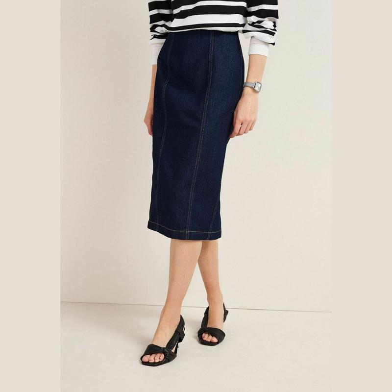 Темно-синя джинсова спідниця олівець довжини міді класичного крою m розміру