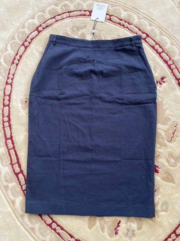 75% коттон, 25% лён, размер 28/42 указано, производитель Италия. По бокам (по бокам) чуть светлее ткань. Длина - 67,5см, пояс - 38см, замочек слева есть, поб - 49,5см, сзади есть распашонка - 24см.