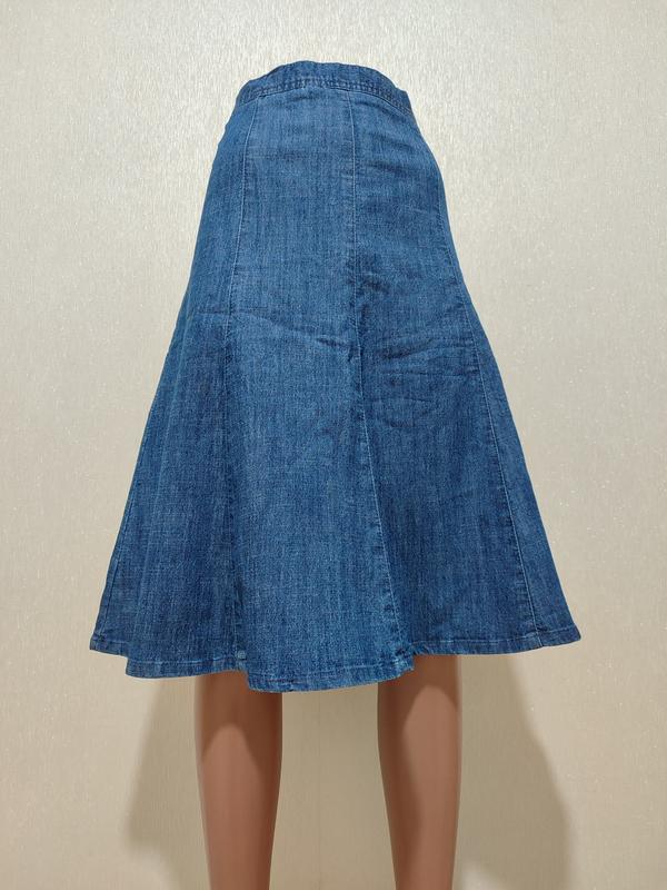Секонд высокого класса, стильные и качественные вещи известных брендов. Стильная джинсовая юбка с красивым дизайном, застежка молния сзади, вставки резинки, не стрейч. Заміри на фото.