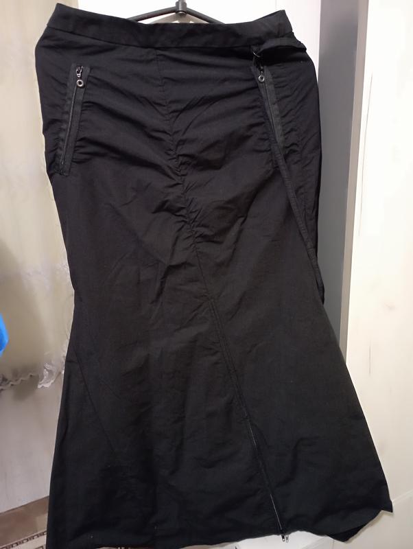Новая классная юбка..очень стильная.Немецкий бренд.. по бокам идет присборенная..Спереди украшена карманами-фальшифками (молниями).спереди также есть длинная молния, которую можно как застегнуть или носить в расстегнутом виде.Также декорирована узкими ремешками.материал коттон.не тянется. талия-36 стегна 46 длина -90