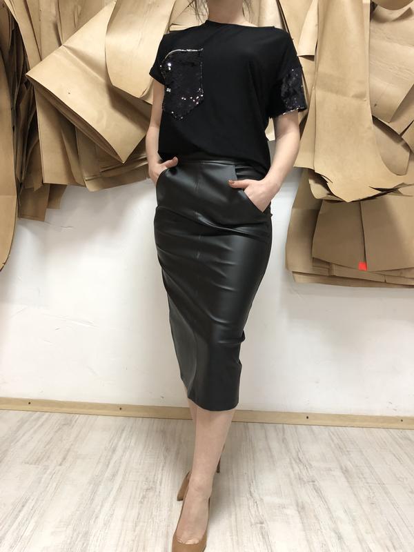 Стильна спідничка з еко-шкіри від українського виробника! В наявності всі розміри, а також в двох кольорах-чорний та коричневий!