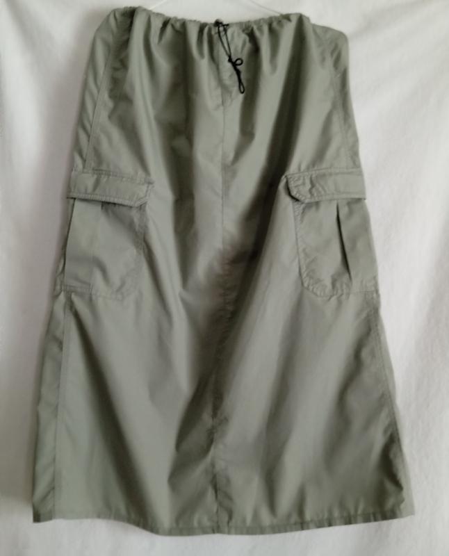 Юбка карго с карманами по бокам на резинке;.р. М. талия пот.свободное состояние 46. (резинка). довжина 82.ширина низу 62.бедра 54.