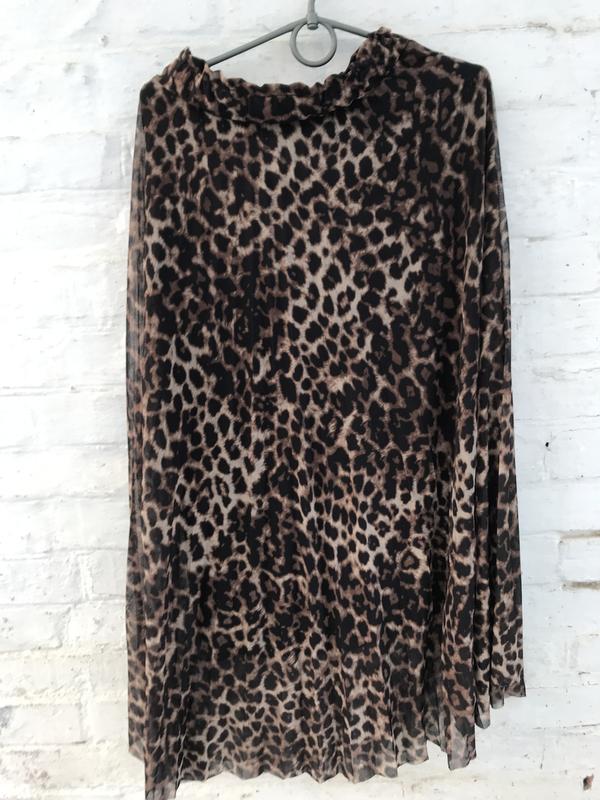 Легка довга спідниця ( в принт лео ) на резинці , добре тягнеться . На чорній легкій підкладці Довжина спідниці 87-88 см Напів обхват талія ( на резинці ) 32 см - тягнеться легко до 50 см По бедрах вільно Розмір вказаний на спідниці 36