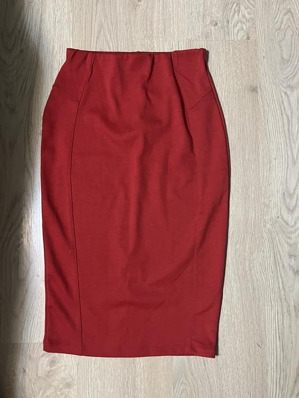 Спідниця- олівець в червоному кольорі, гарно тягнеться (на талії резинка) Довжина 66 см Напівобхват талії 33 см (тягнеться десь до 44 см)