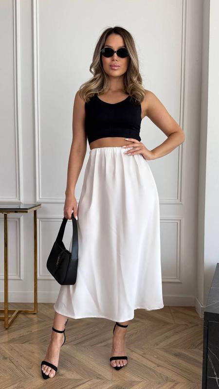 🤍Ну просто самая желанная летняя база ☺️ легкая, невесомая, нежная и универсальная юбочка из шелка🩶 ▫️Ткань: шелк Армани ▫️Размер: 42-48 ▫️Цвет: белый, беж, черный ▪️Мод.: 058-1487