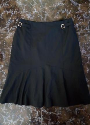 Чёрная юбка-годэ красиво сидит на фигуре, а металлические застёжки зрительно делают фигуру стройнее. На подкладке. Без дефектов. ПОТ 41, ПОБ 52см. Подойдёт на наш 48 размер.
