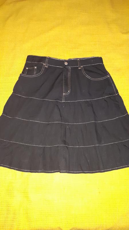 Юбочка,цвет черный.Приятная мягка я х/б ткань.Смотрится стильно и сим патично.Пояс,кокетка,3 оборки. 2ка рмана впереди.Длина 55см,пояс 39 см,бедра 48см. Указан размер М. Сзади см.фото 7. Если надо еще фото - дошлю. Доставка УП, НП или Джастин