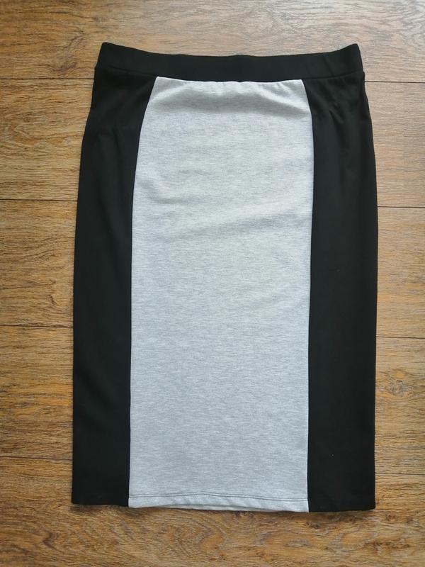 Серая юбка-карандаш из эластичного материала с чёрными боковыми вставками. Юбка такого фасона идеально сядет по фигуре и выгодно подчеркнет талию и бедра. Состояние новой вещи. ПОТ- 40 см, ПОБ- 46 см, низ-43 см. Длина 68см. Очень хорошо тянется. Состав указан на бирке. Обмена и возврата нет. Благодарю за интерес к моему товару.