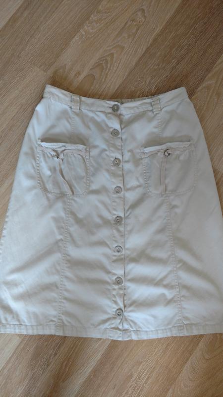 Летняя юбка. Застёгивается впереди на металлических пуговицах. впереди и сзади накладные карманы