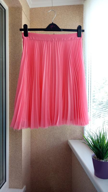 Красивая плиссированная юбка. Указан размер 12, но может подойти и на размер 10. На подкладке. Полуобхват талии - 38 см, Полуобхват бедер - свободный (чтобы плиссировка почти не расходилась - 54-55 см, юбки до 58-60 см), Длина юбки - 56 см) ❗ ПОВЕРНЕНИЕ и ОБМИН НЕ ПРЕДУПЛАЧНО ❗